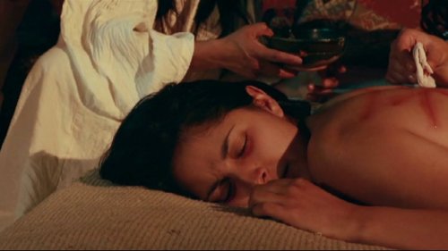 Leticia’s single-mindedness and her strength are brought to light in the bedchamber where ointment is applied after her scourging. She says with grit, “I will leave this place . . . maybe broken up into pieces, but I’ll leave from here alive.”