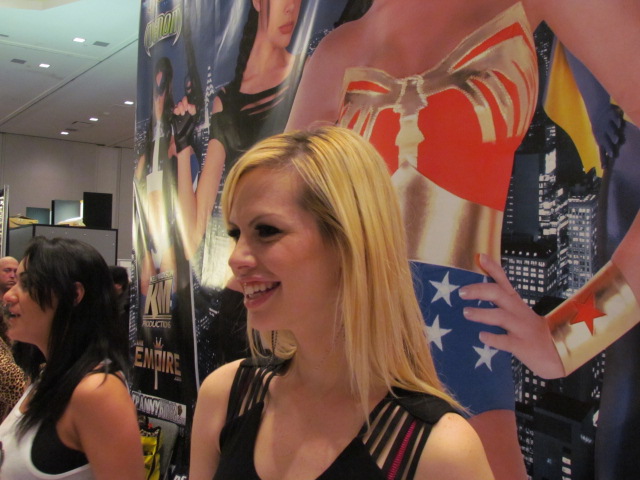 With the help of Steve Nelson, the editor of AINews.com, I usually nail down a couple of people for impromptu interviews. This year the highlights were the previously mentioned Emma Hix at Foxxx Modeling and Kasey Warner, the star of B Skow’s Color Blind. Kasey and I are from the same part of the country which made our talk special.