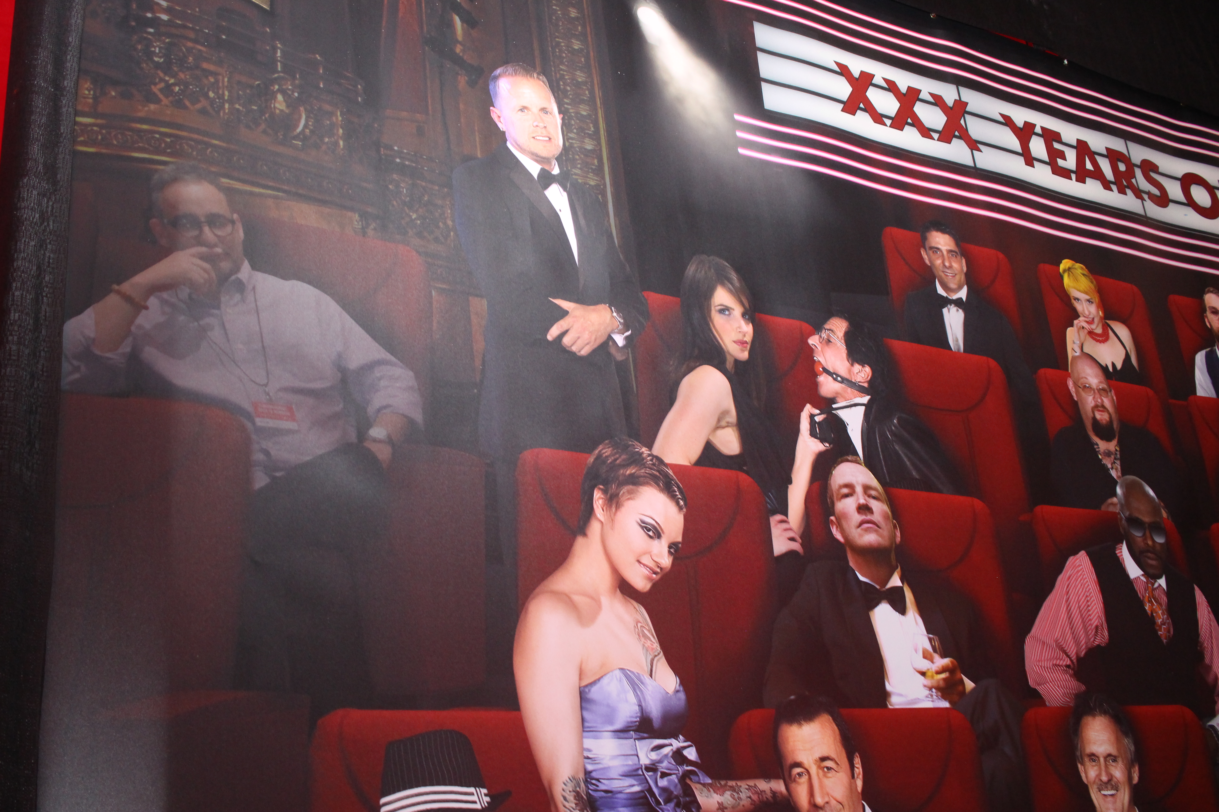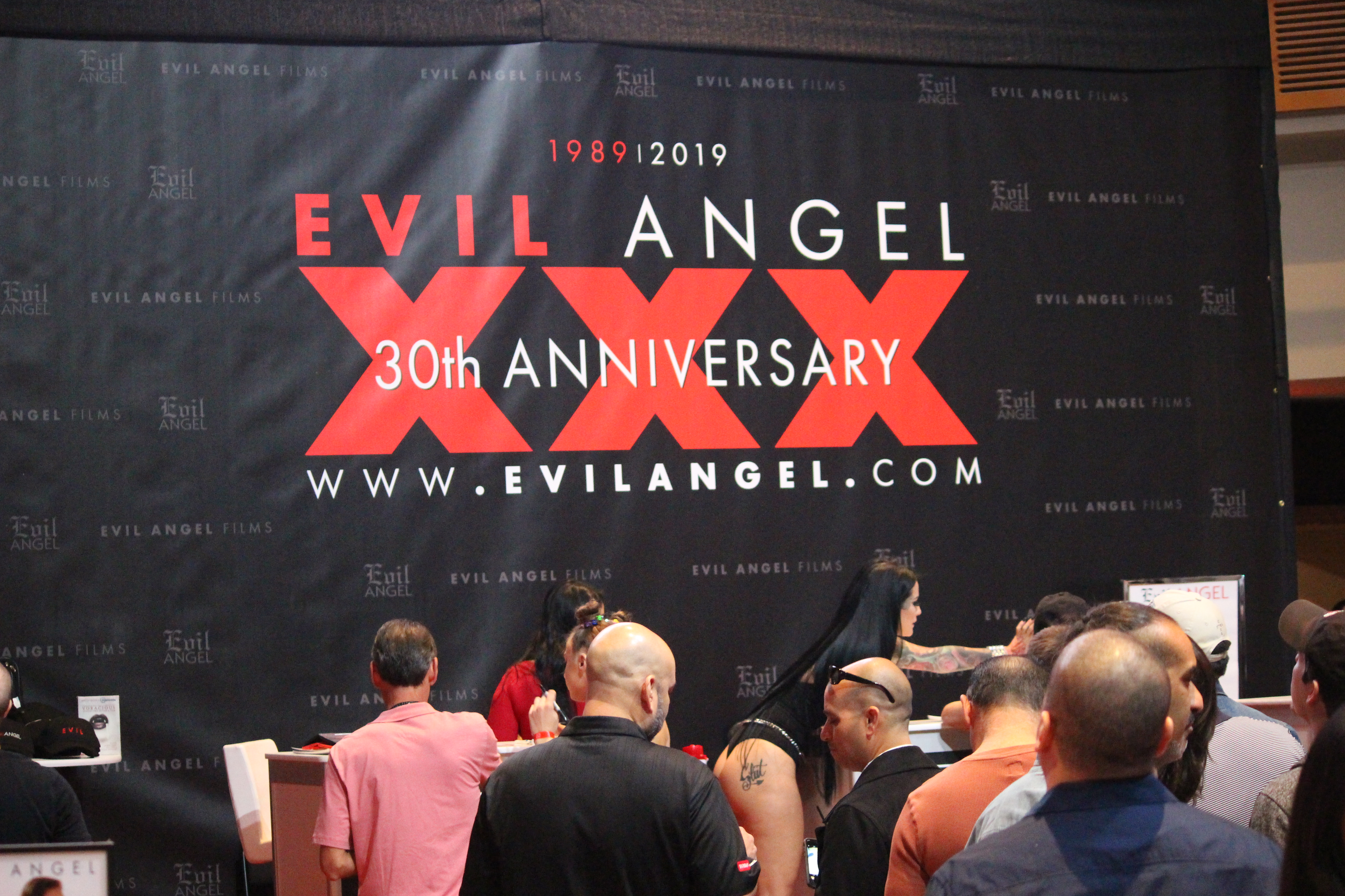 During my first day at the AVN trade show, I had a passing conversation with writer Tod Hunter, whose work I regard highly. He mentioned that I should check out the Evil Angel booth where a large billboard-like poster was on display in celebration of the company’s thirtieth anniversary. Tod added that I’d find it worth a look, especially the upper left side of the picture.