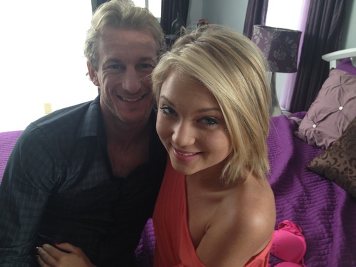 Having attended a sorority gathering with step dad Mark Wood, Lucy wants an after-date payoff. He walks into her bedroom with a few cut flowers as a “thank you” and she seizes the opportunity, pulling his tie to give him a kiss.