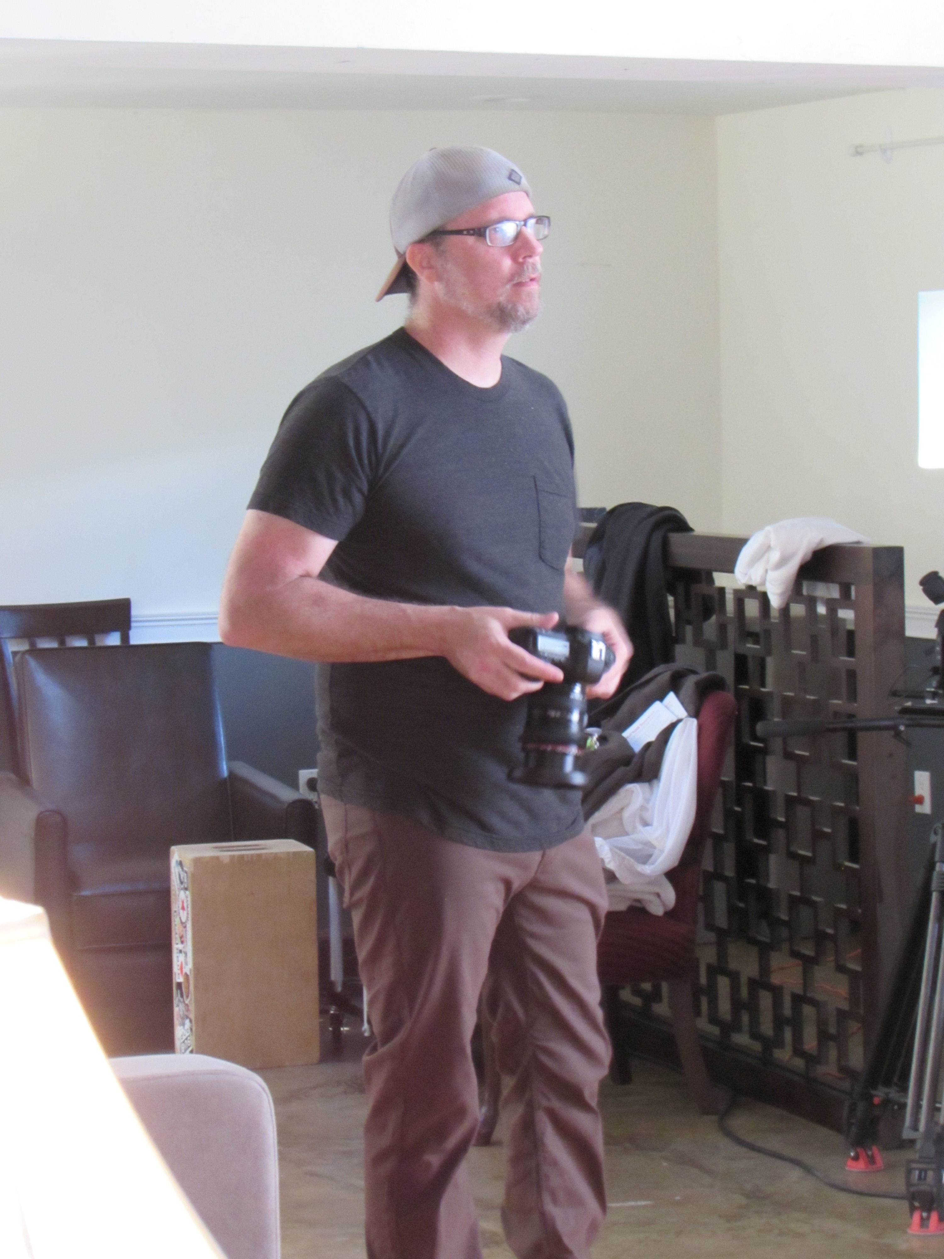 I take a minute to speak with the boom operator/PA. His name is A.J. Westwood and he tells me he’s worked with Eddie, Jacky St. James, and Paul Woodcrest for over a year. He’s a Southern California lad in his twenties, amiably pleasant and knows his job.
