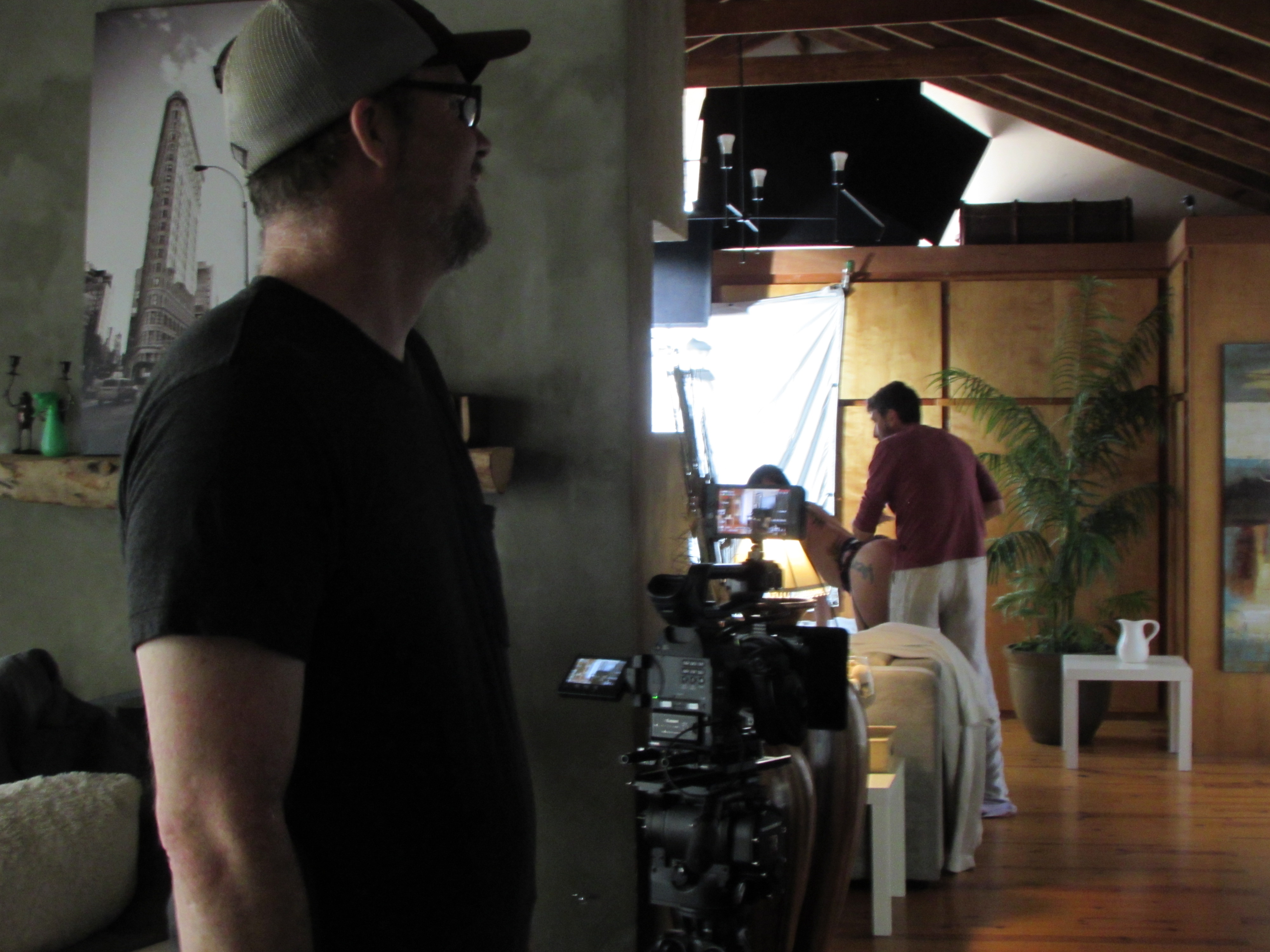 The camera moves toward Mandy as Steve walks in and begins to caress her. There is no dialogue and this part of the scene wraps up quickly. The dolly is taken apart. Steven and Mandy don’t miss a beat and continue “warming up.”