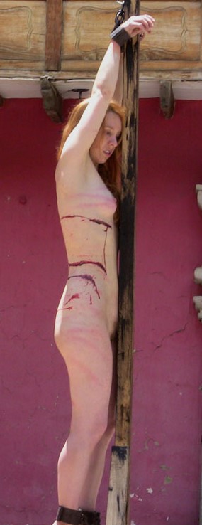 She nods slightly in hopes of upping her chances of survival. The whipping commences again.