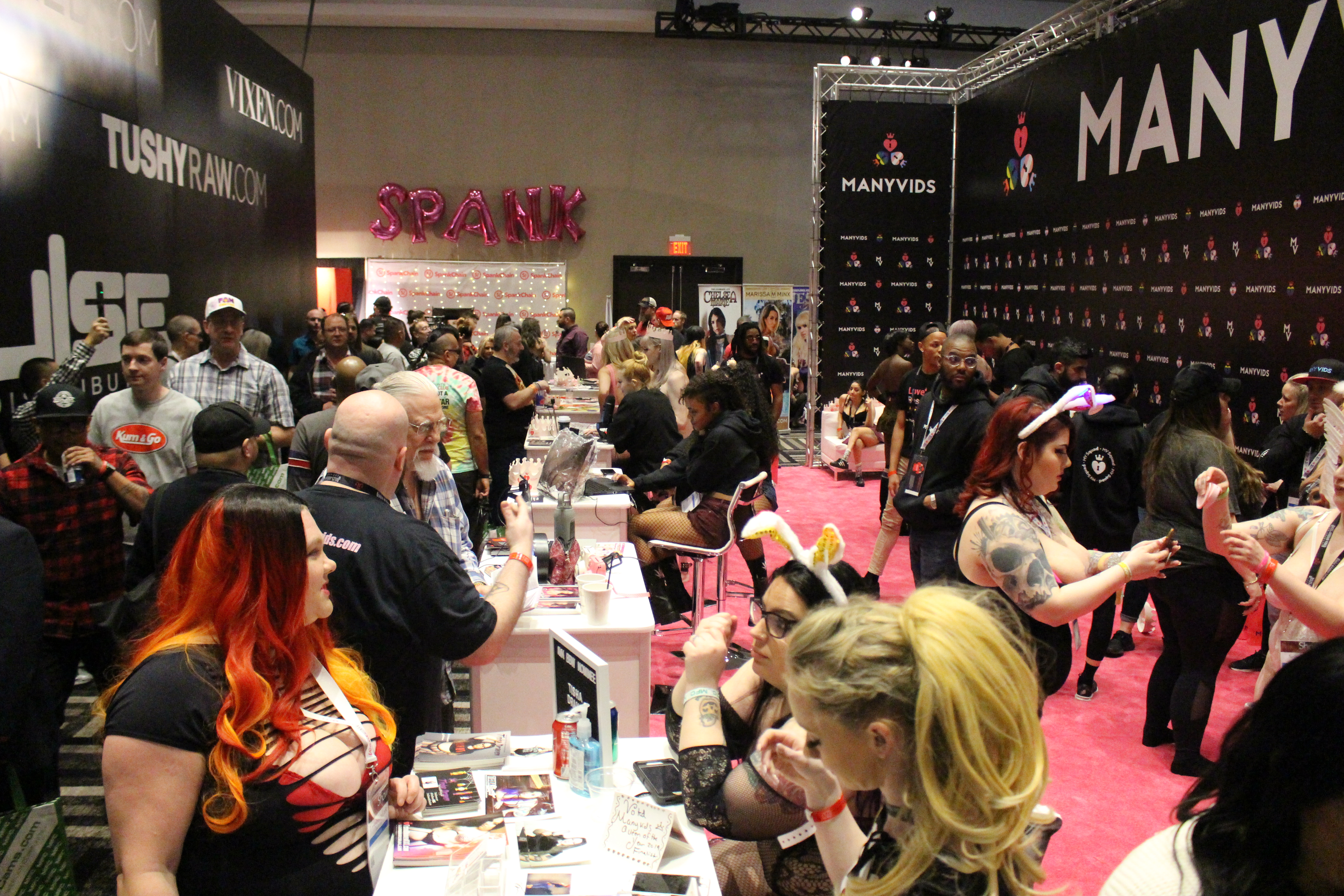 At a convention that for decades touted video tapes and performer meet-and-greets, today cammers and studios play side-by-side. With Greg Lansky’s Vixen, Tushy, and Blacked responding to fans on the left of the picture below while the cammers’ ManyVids draws a crowd on the right, what does that tell us about 2019?