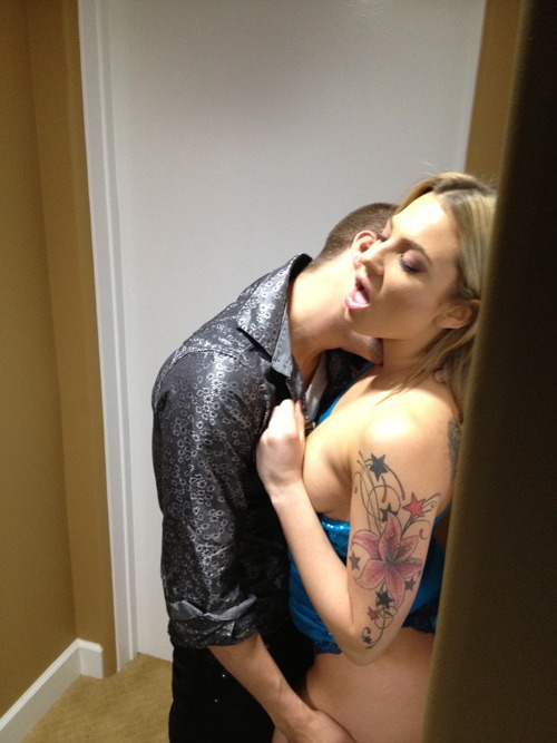 Jen (Bailey Blue), the girl who took Eve’s job, arrives with Brandon. The slutty blonde provides a trashy taste of gonzo that stands in contrast to the other sex scenes. Rough and raw in a hallway setting, the shoot is quick; no bed needed.