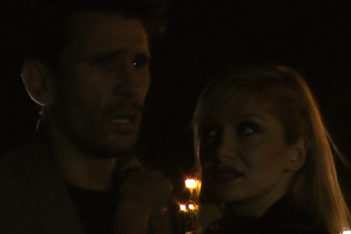 IMG_9563Ritual highlights the scene. Before the ceremony begins, a male blood slave is presented for Adriana’s inspection. Zoltan’s chanting continues as Adriana removes Amira’s mask. Her fangs come out to let the viewer know this is a vampire inspired rite. The act is an unveiling, recalling the Jewish practice of recognizing death. Amira will now grow old and die as a human when the ceremony is completed.